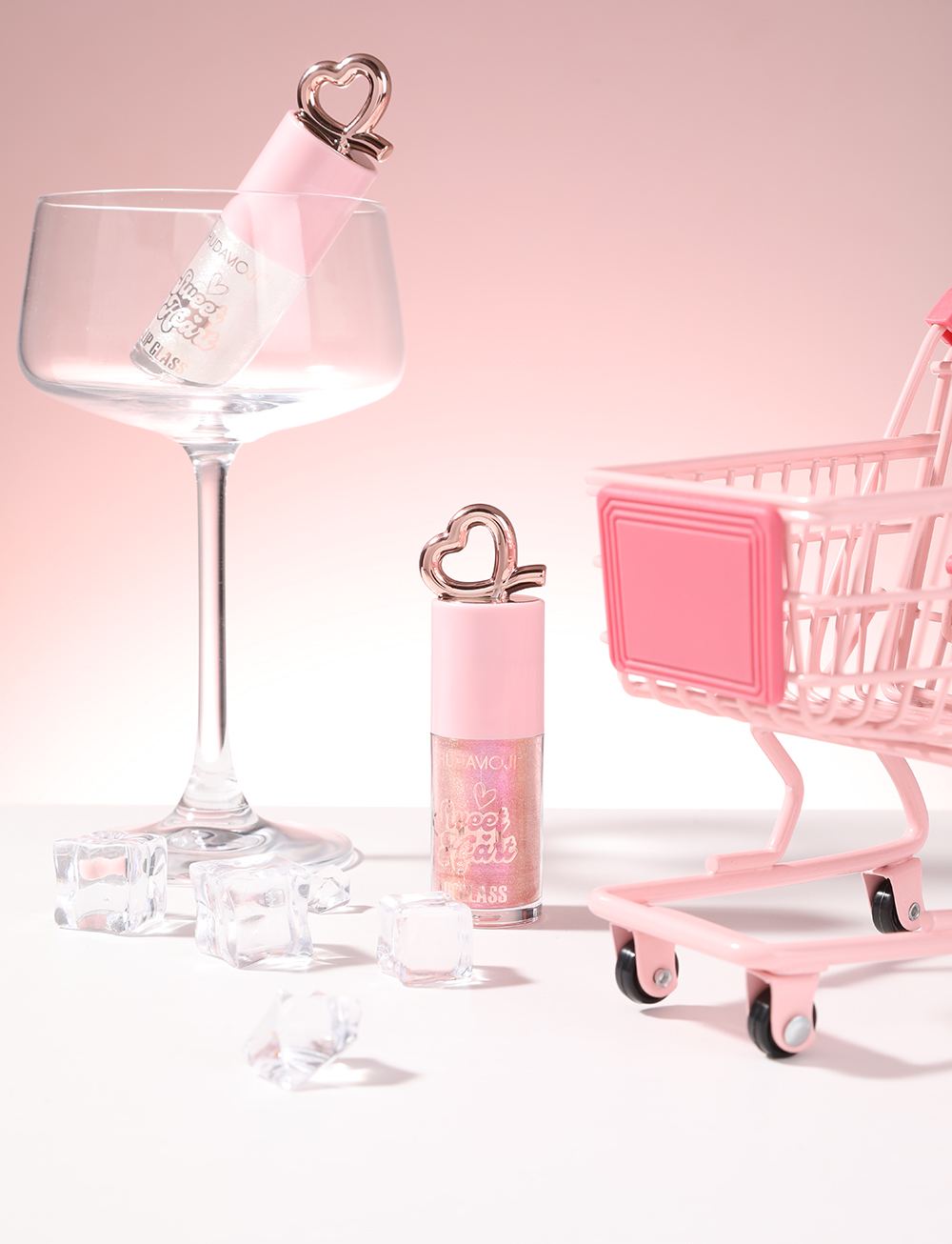 cosmetics including lip gloss, lipstick, eyeshadow,